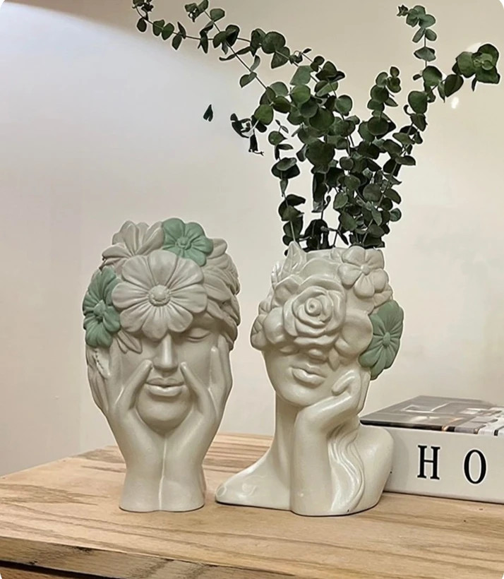 گلدان رومیزی طرح دختر با تاج گل کد ۲۰۳۹
